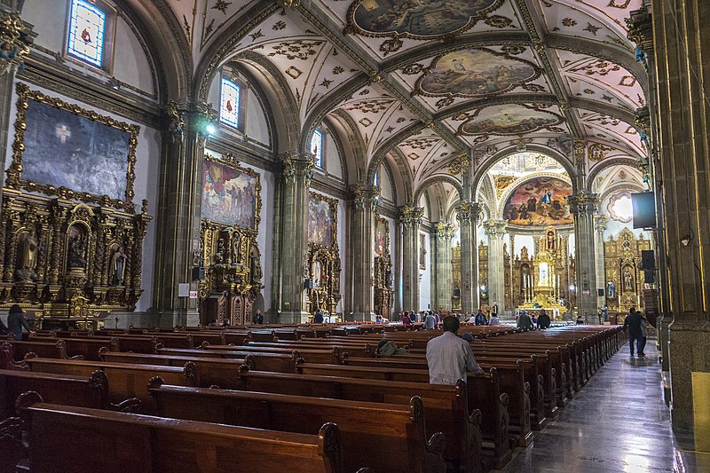 Originalmente, la iglesia constaba de tres naves. La más grande y alta en el centro, con vigas de cedro. El coro y el presbiterio se separaron de la nave principal a la manera de la Basílica Romana. Pero para 1918 el atrio se redujo en 46 metros cuadrados, pues se necesitaba este espacio para dar paso al tranvía que llegaba de San Ángel. Posteriormente esta plaza se convirtió en la Plaza Hidalgo, al norte del complejo.