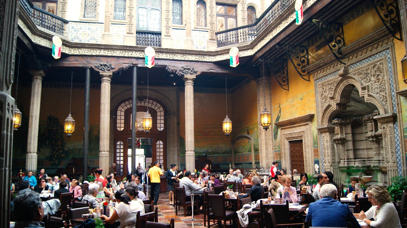 Los hermanos Sanborns, procedentes de California, abrieron su primera fuente de soda y droguería en la entonces calle Filomeno Mata (hoy es la Calle Tacuba). Pocos años después se expandieron a la Casa de Azulejos. Tardaron dos años en remodelarla, poniendo un techo de vidrieras sobre el patio principal, y siguieron ampliando. Hoy en día, hay 125 restaurantes Sanborns con los grandes almacenes adjuntos y unos 34 cafés Sanborns. Este restaurante en particular fue considerado un establecimiento gastronómico bastante elegante durante la mayor parte de la primera mitad del siglo XX, pero hoy en día, lo encontrará cómodo y una agradable excusa para disfrutar de uno de los verdaderos tesoros históricos de la Ciudad de México.